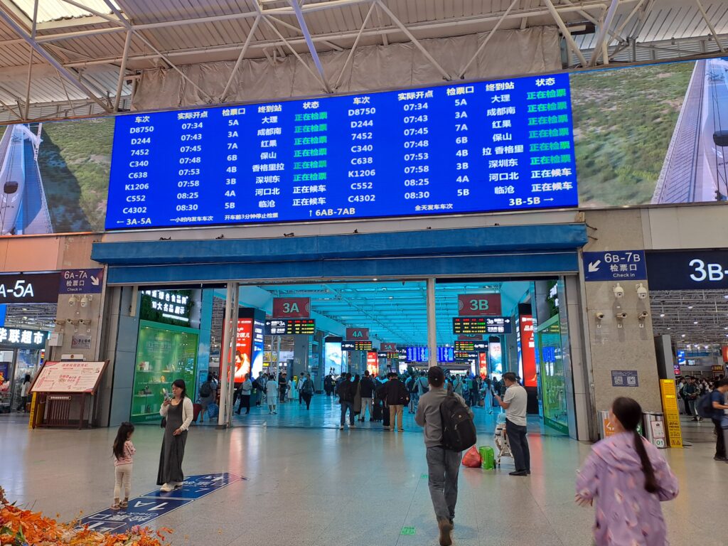 Übrigens: Es gibt auch noch einen Zug mit Zugnummer ohne Buchstaben für die Streckt Kunming – Qujing, eine Art Dodo unter den Zügen sozusagen. Er fährt einmal am Tag und benötigt für die genannte Strecke 02:44 Stunden. Für hart sitzen oder ohne Sitz (andere Kategorien gibt es nicht) kostet ein Ticket 20 Yuan (ca. 2€). Er hält an vielen kleinen Orten, von denen ich noch nie gehört habe – I am intrigued.
